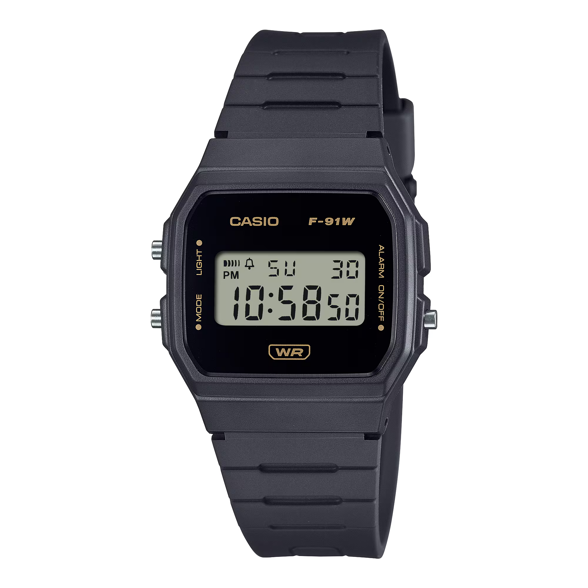 A favorite for decades — the slim, lightweight F-91 with digital LCD now with a minimalist face, fewer mode indicators, and more environmentally responsible materials. The band is made with bio-based resin, a material expected to help reduce environmental impact. Complete with date/day display, alarm, stopwatch and other handy functions, these watches are always at the ready.