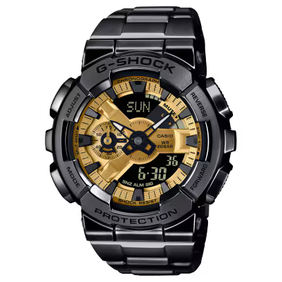 Introducing the GM-110BD, an updated take on the ever-popular large case analog-digital G-SHOCK with metal bezel and band. Precision forging, cutting, and polishing, and even special molding techniques, all go into crafting a metal bezel featuring a rugged, high-impact design, for a solid construction that sacrifices nothing in toughness. The case is made of fine resin to protect the module.