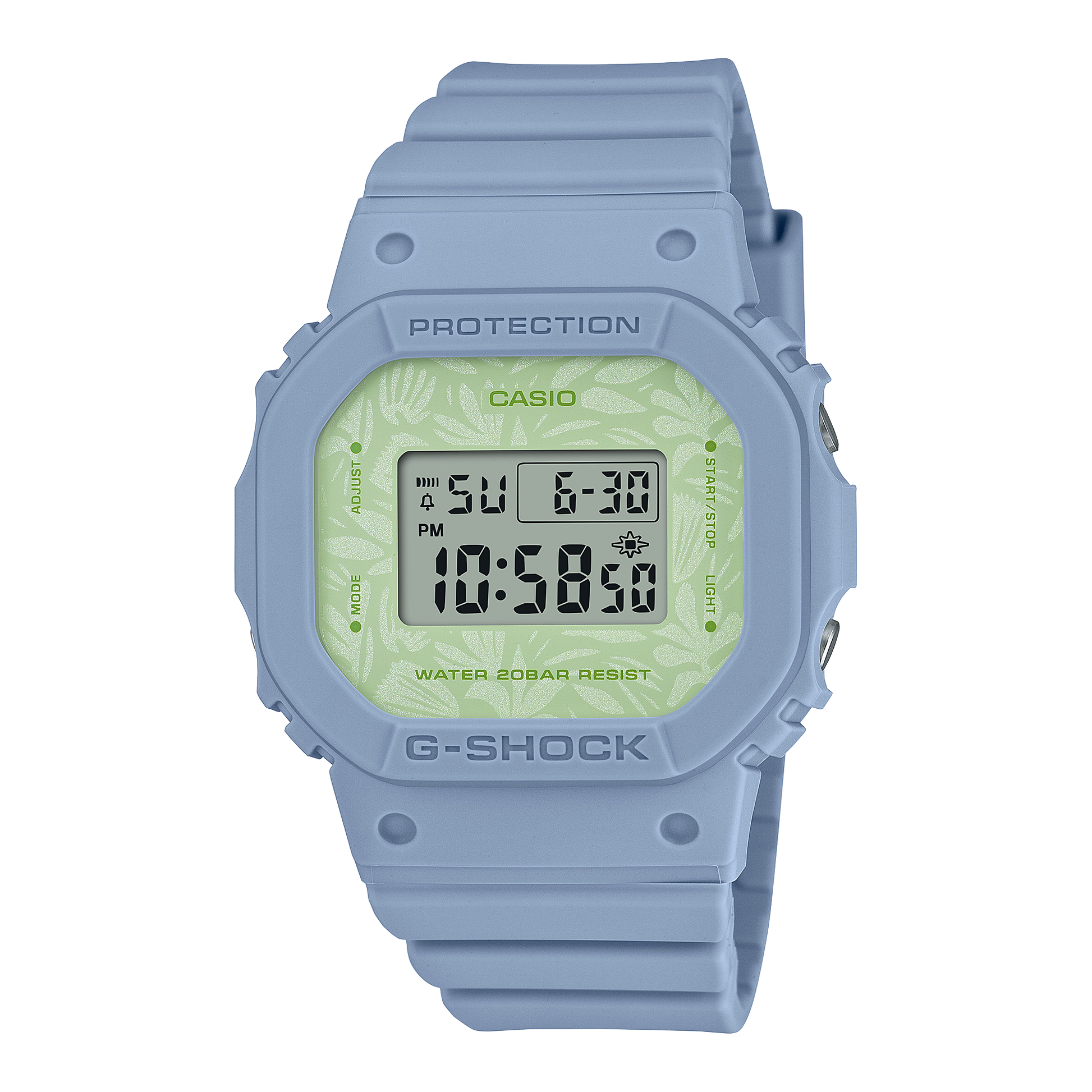 Immerse yourself in the healing comfort of nature with a true-to-you G-SHOCK in flora-inspired colors and botanical designs. The main resin components are made with bio-based resins produced from renewable organic resources. This material is expected to help curb CO2 emissions and otherwise reduce environmental impact. Choose your favorite model, in a slimmer, more compact design and comfy color palette. The iconic GMD-S5600 features a dial printed with herbal design. The ever-popular octagonal GMA-S2100 displays an indicator in the shape of a basil leaf motif on the inset dial at the 9 o’clock position.