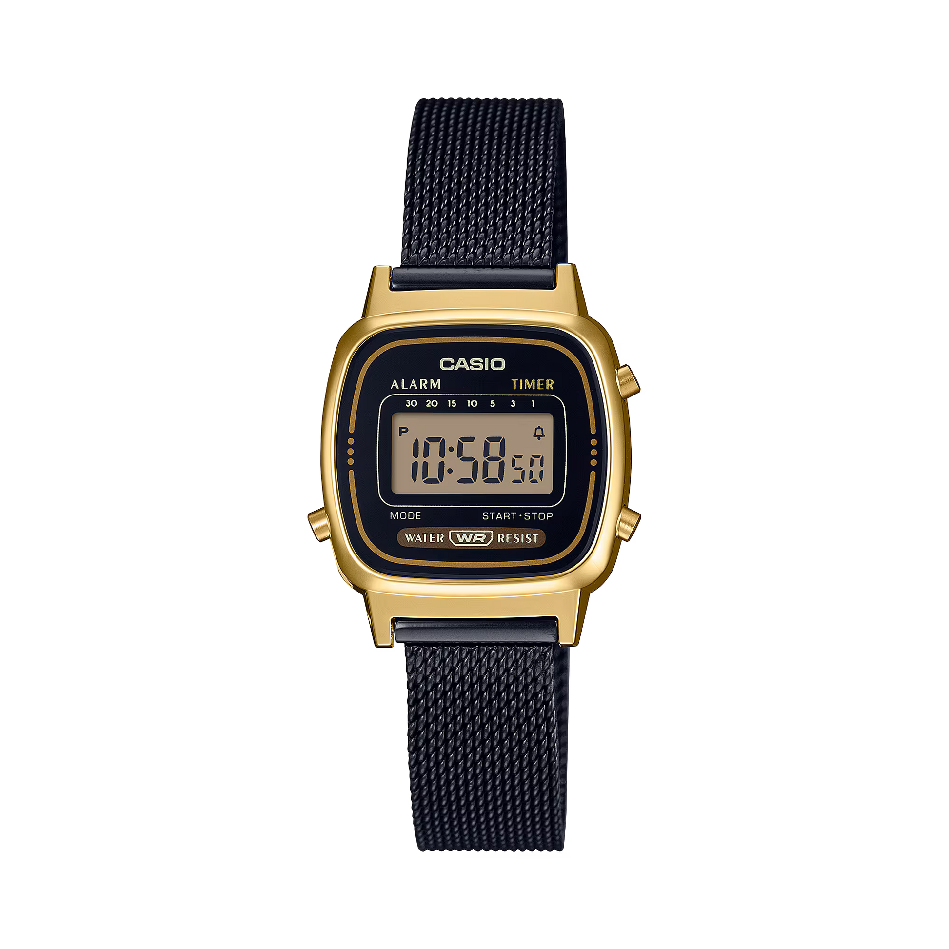 • Water resistant • Alarm • 1/10-second stopwatch • Countdown timer • Mesh band