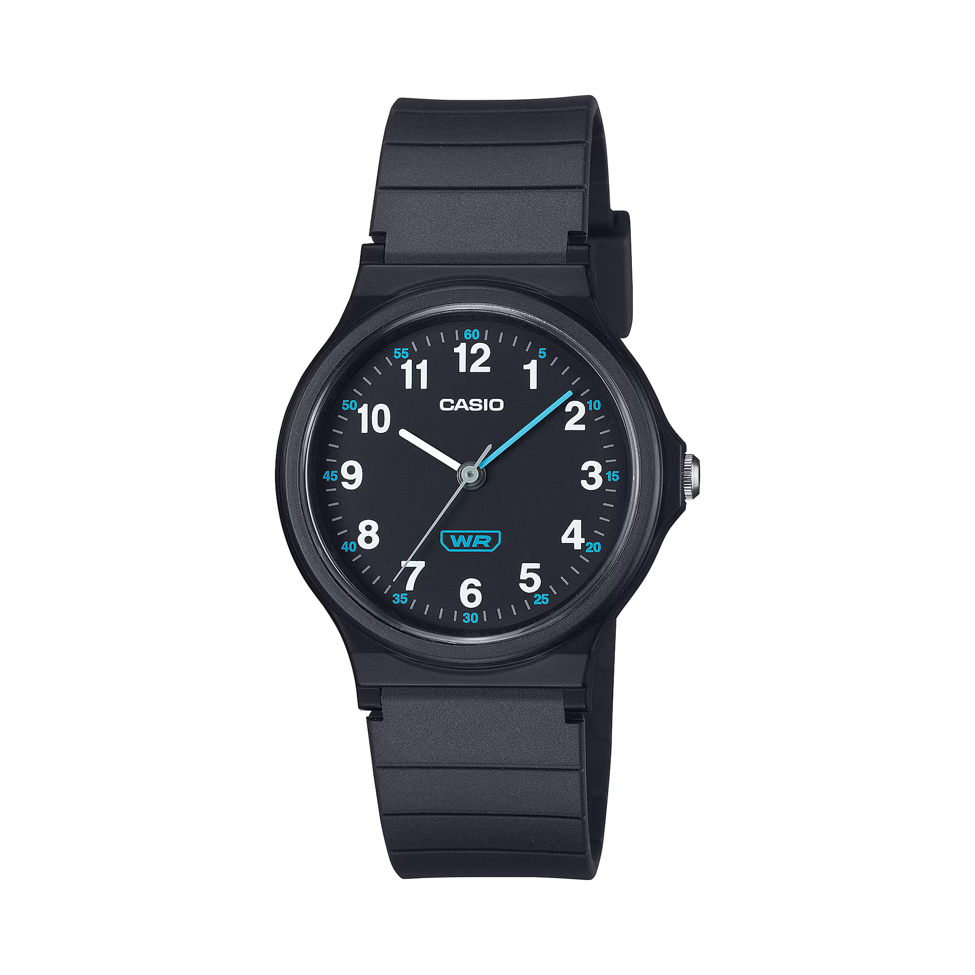 An analog watch with the classic look of hour, minute, and seconds hands in a smaller, easy-to-wear size. The hour and minute hands are colored to match the corresponding index marks, so it’s easy to tell time — making this an ideal first watch. The band is made with bio-based resin, a material expected to help reduce environmental impact.
