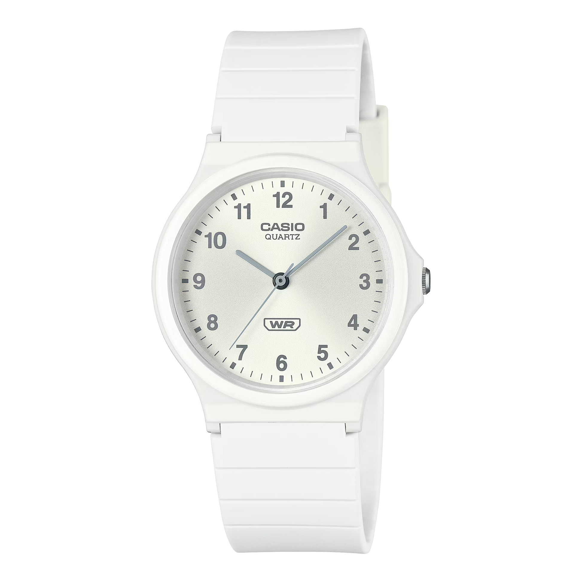 The best-selling MQ-24 is back, now made with more environmentally responsible materials. The hour, minute, and seconds hands design features simple index numbers in a lineup of different monochromatic color schemes, all polished to a slim, minimalist look and feel. The band is made with bio-based resin, a material expected to help reduce environmental impact.