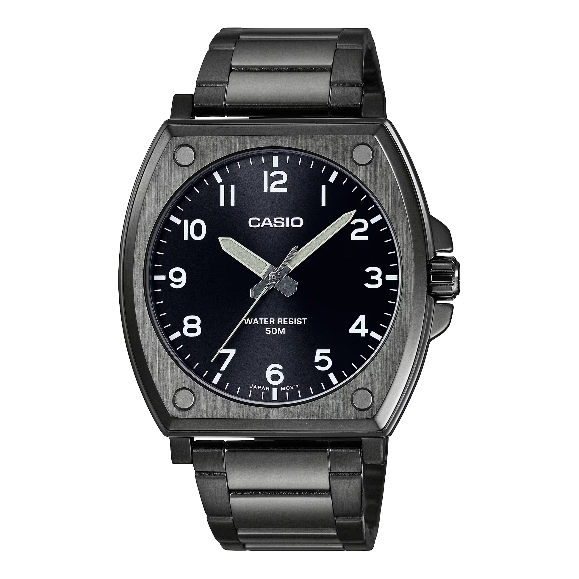 Classic and compelling. An analog watch designed around the iconic look of hour, minute, and seconds hands with an intriguing twist — a case that takes on the timeless tonneau barrel shape. Water resistance up to 50 meters frees you from worry when washing up or working with water.